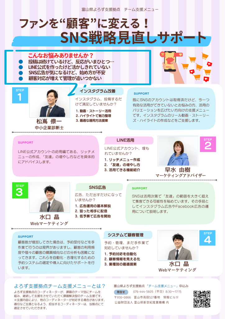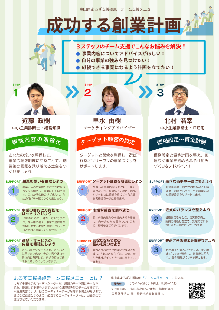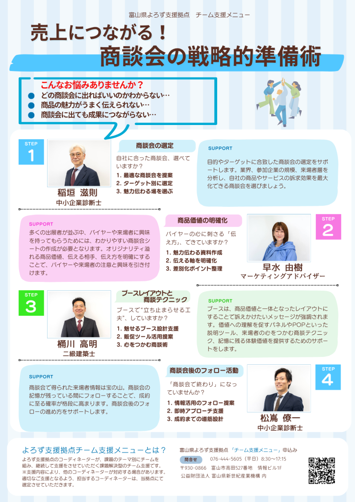 よろず支援拠点では、あなたの課題に合わせて、専門家チームが継続的に伴走支援します。