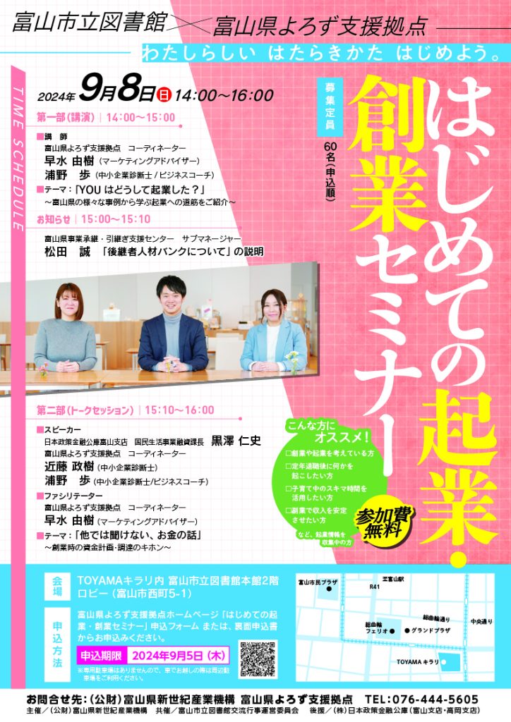 富山県よろず支援拠点は、富山市立図書館と連携し、毎年「起業・創業セミナー」を開催。
