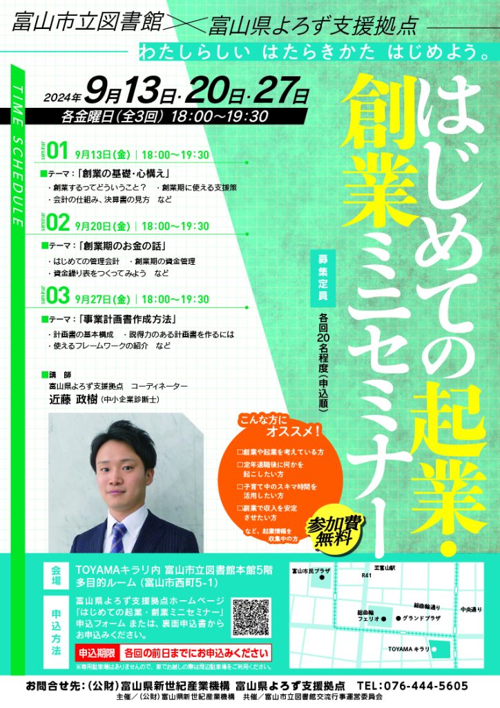 富山県よろず支援拠点は、富山市立図書館と連携し、毎年「起業・創業ミニセミナー」を開催。