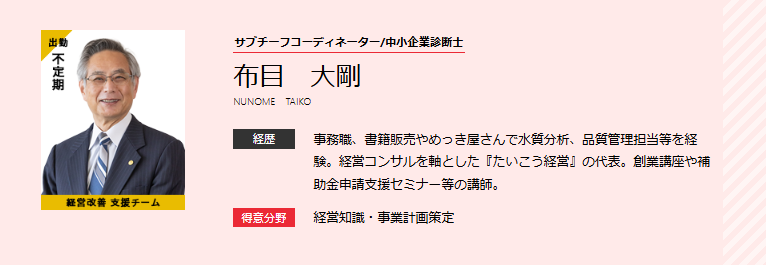 富山県よろず支援拠点 布目 大剛 (ぬのめ たいこう) サブチーフコーディネーター