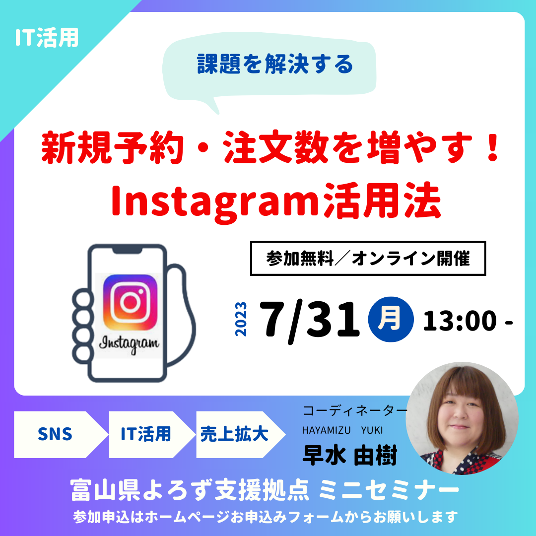 テーマ:「新規予約・注文数を増やす!インスタグラム活用法」