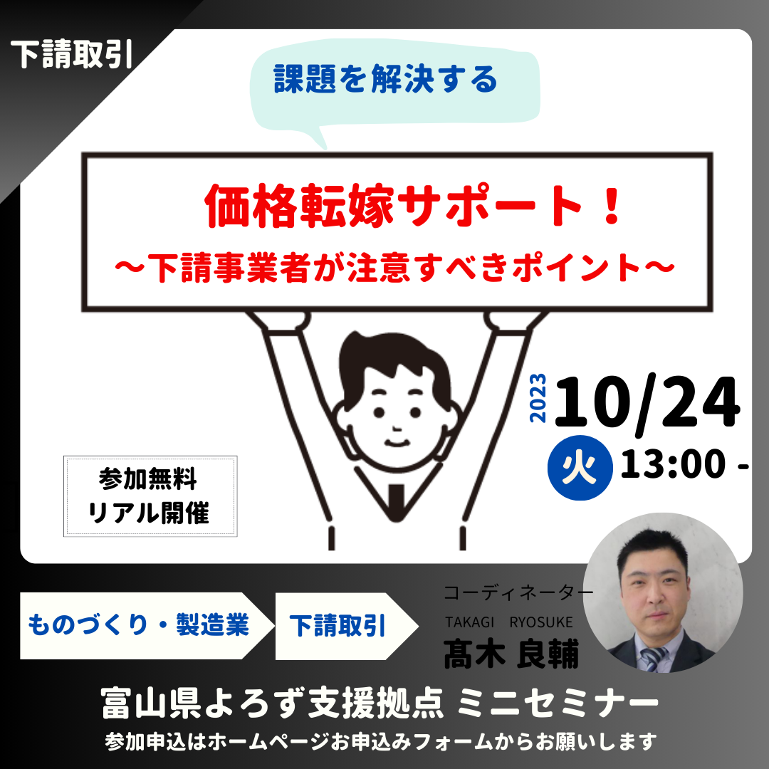 テーマ:「価格転嫁サポート!~下請事業者が注意すべきポイント~」