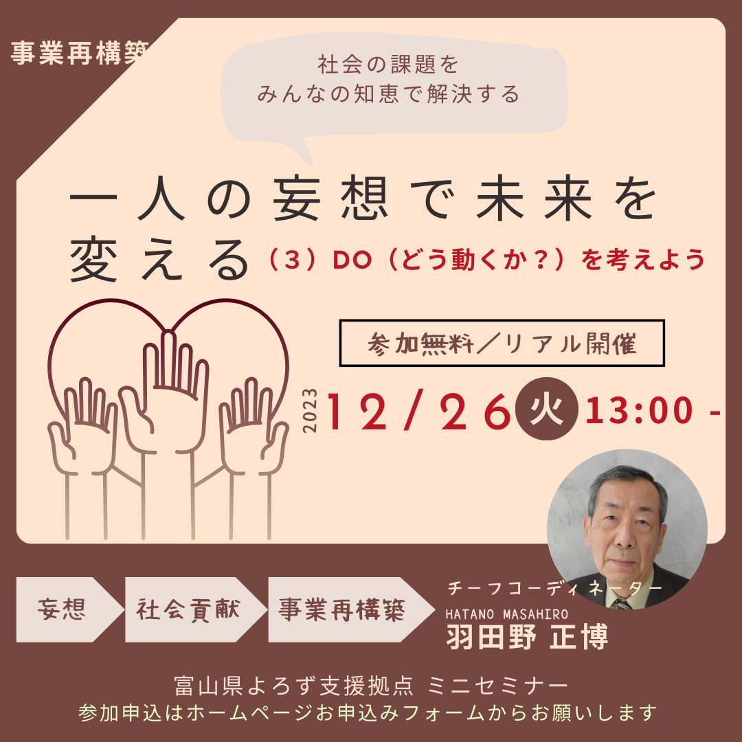 テーマ:「一人の妄想で未来を変える(3)DO(どう動くか?)を考えよう」